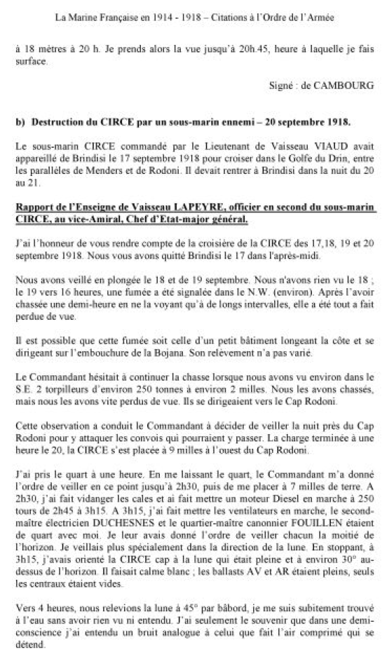 Seul survivant, le cdt en second EV Lapeyre qui était de quart sur
