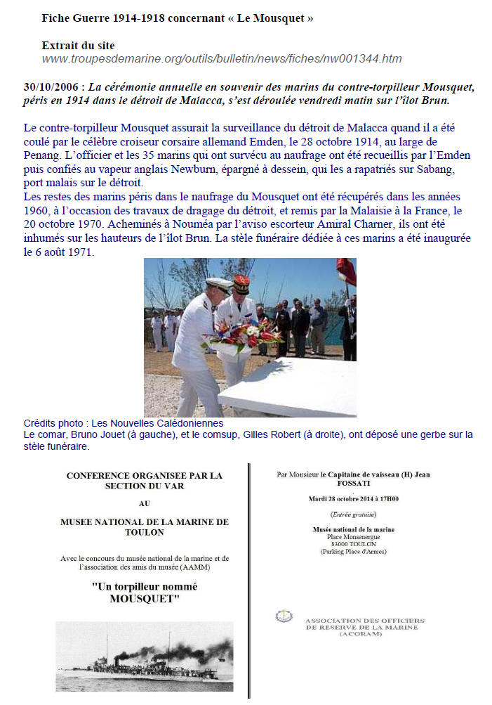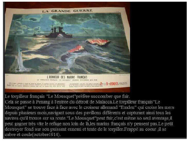 "MOUSQUET" est coulé à 15 milles dans le nord de Poulo-Penang par le