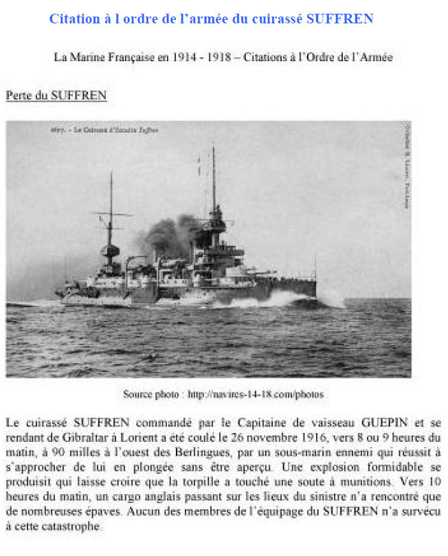 Suffren est coulé au petit matin par le sous-marin allemand U.52.
