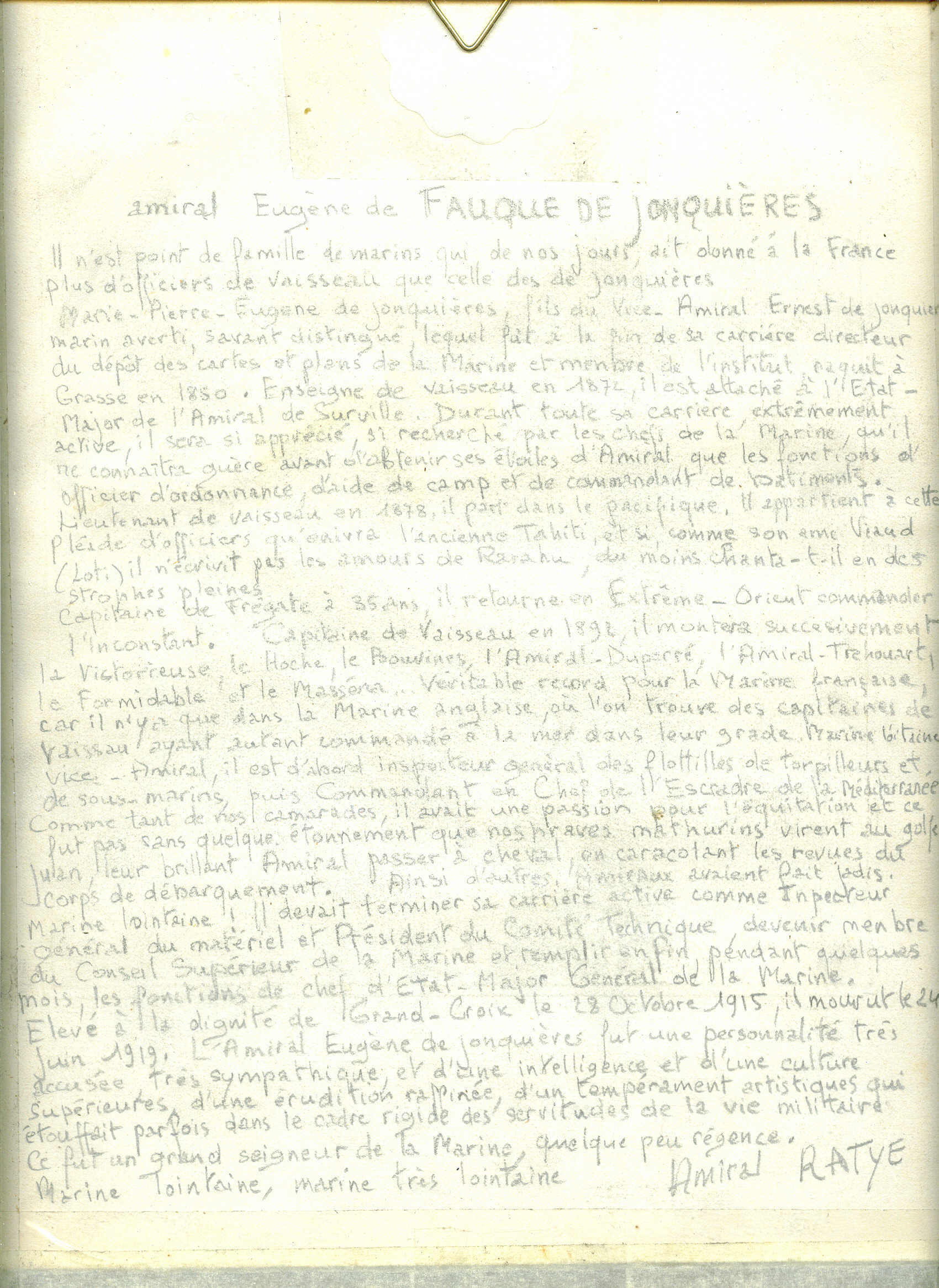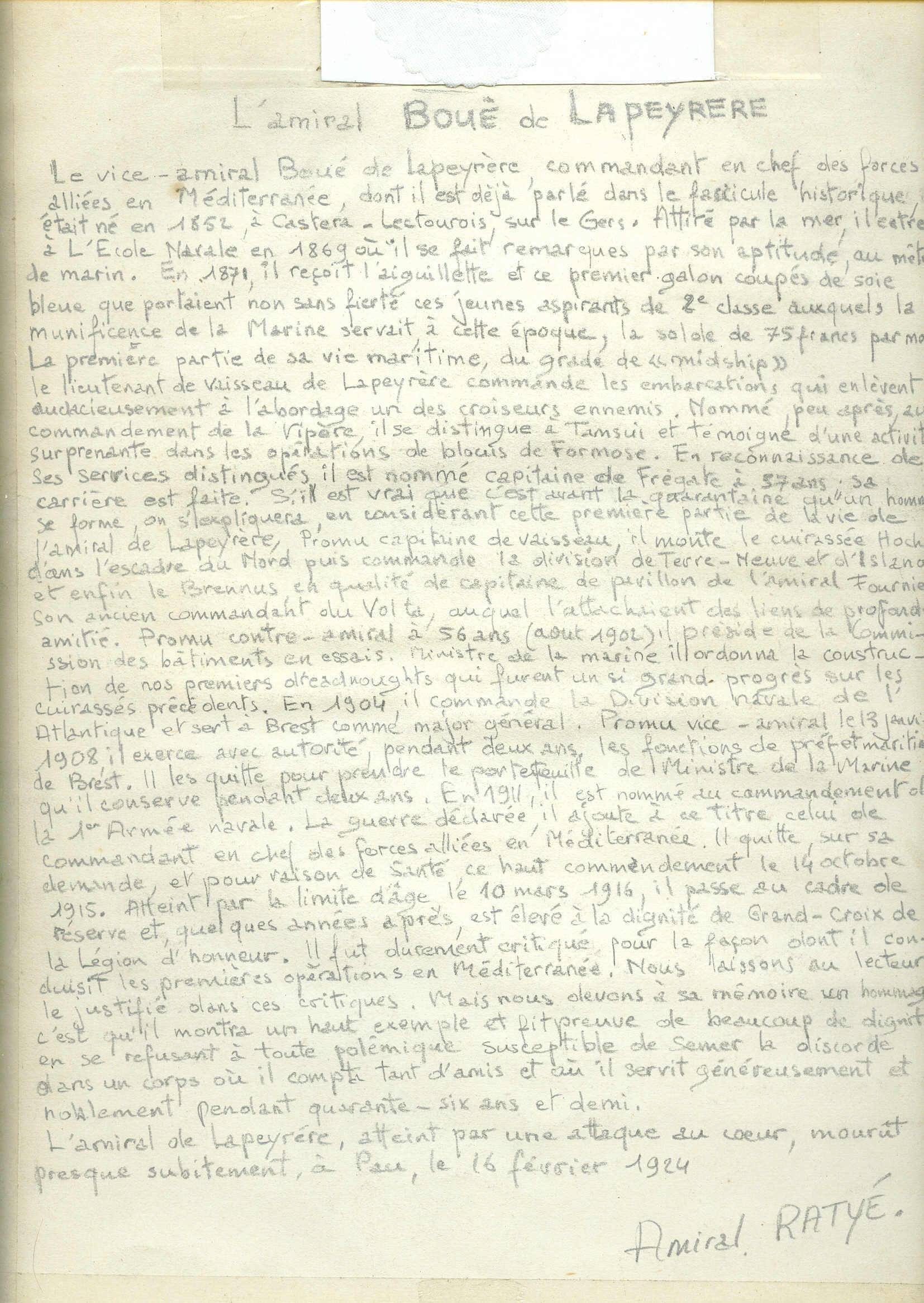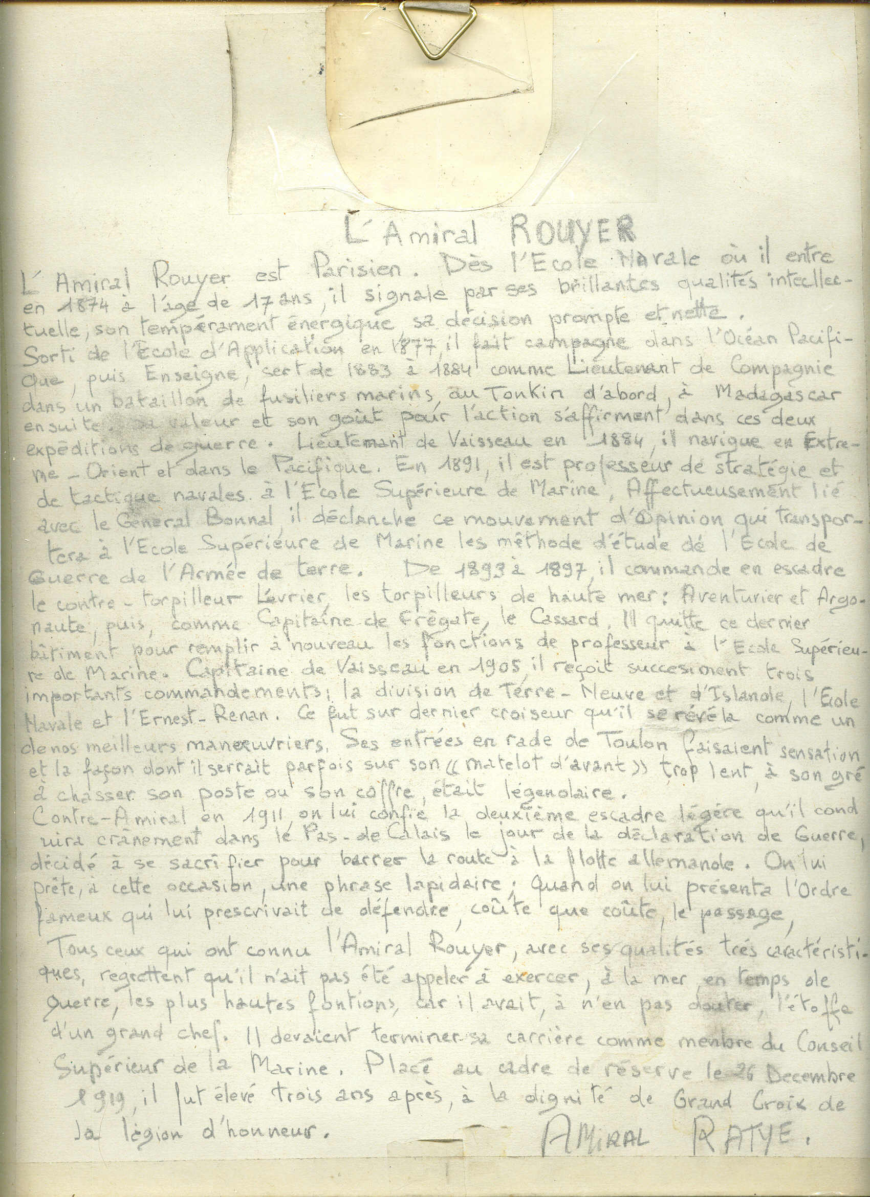 main de l' Amiral Ratye, pour l'ouvrage : La guerre navale