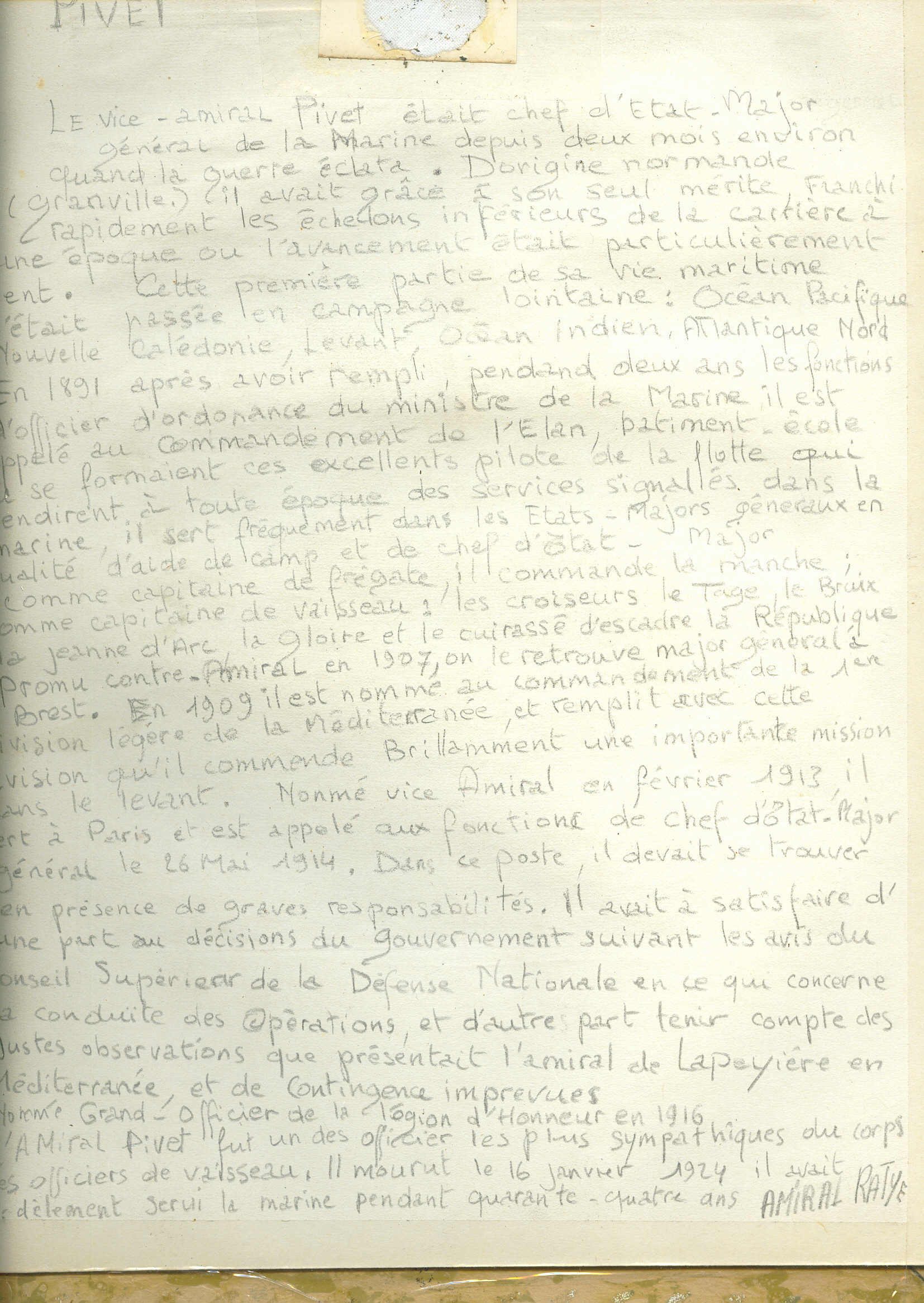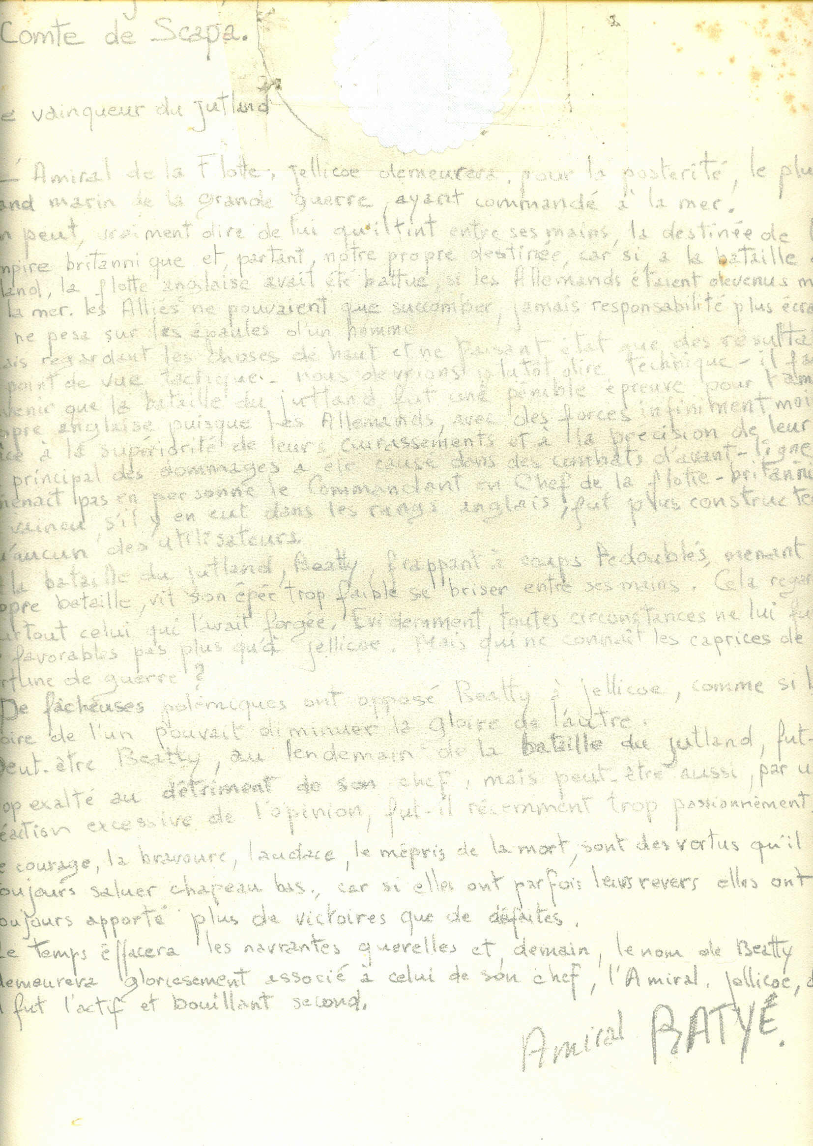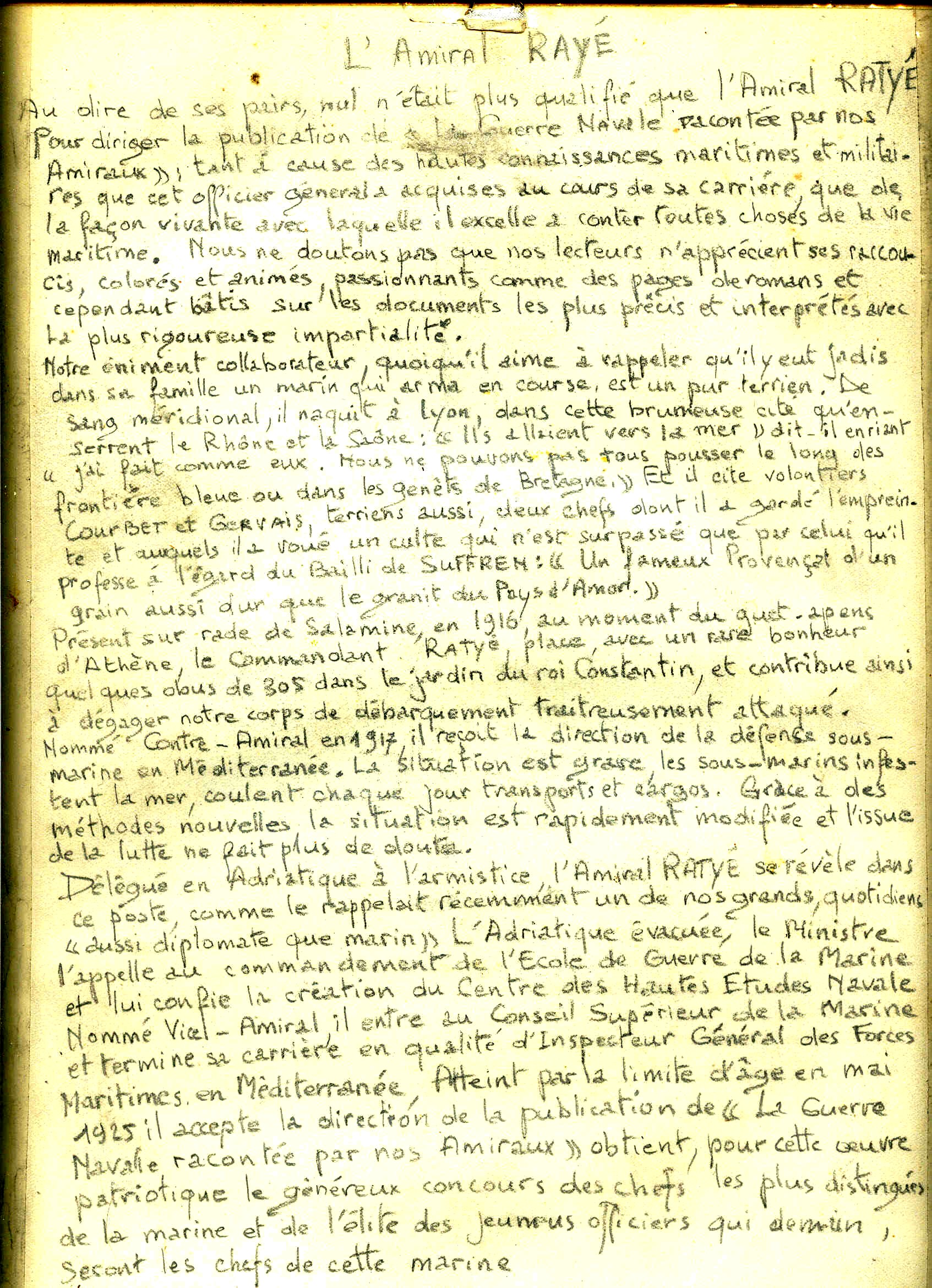 main de l' Amiral Ratye, pour l'ouvrage : La guerre navale