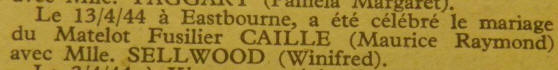 Un fils Raymond, né en septembre 1944. Marié en 1965 à Mlle Swain. Deux