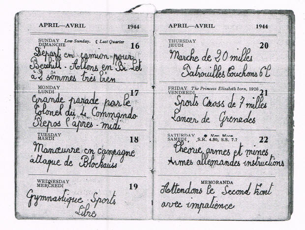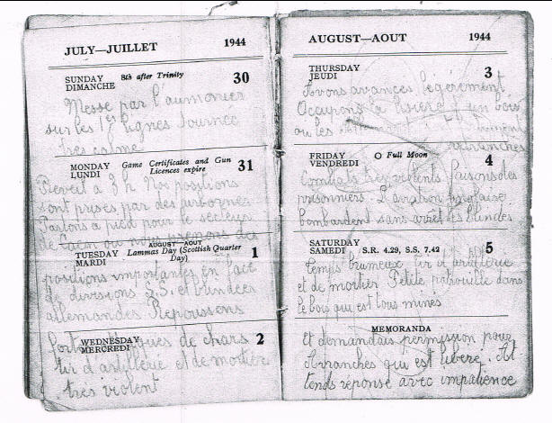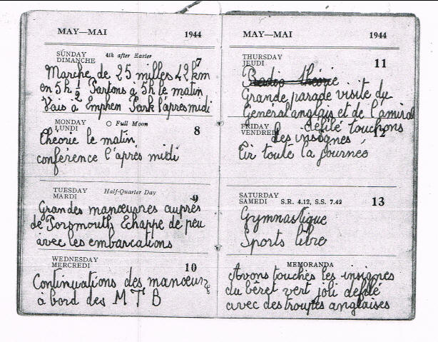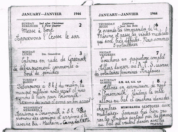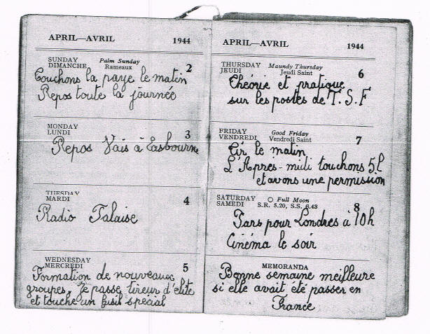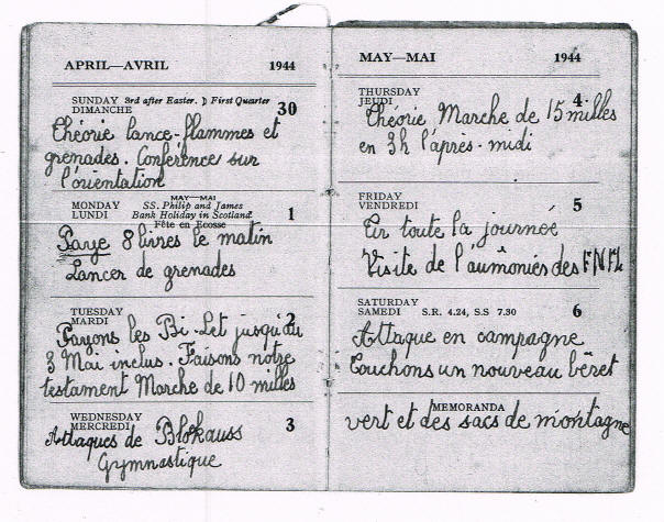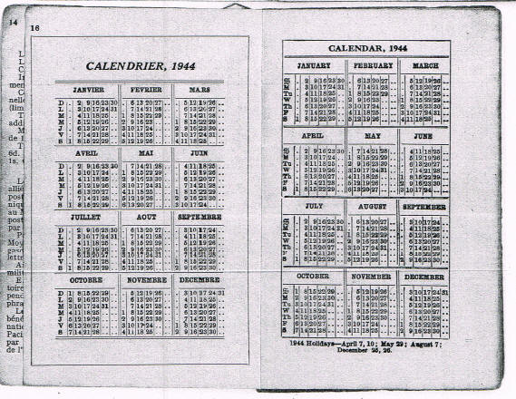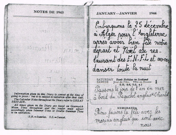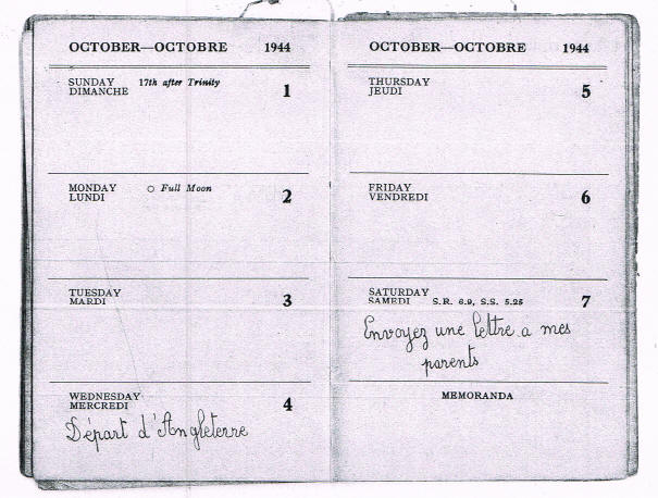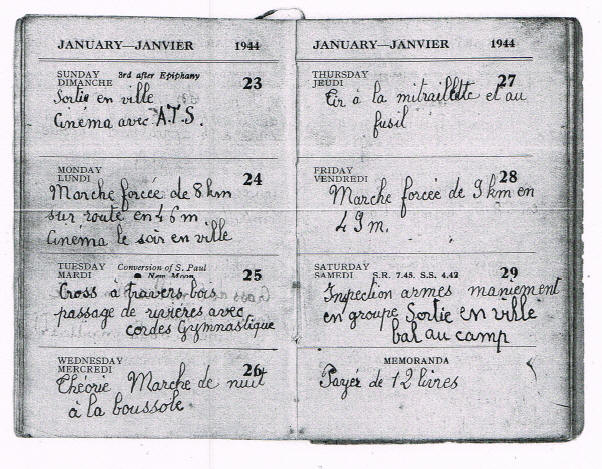 Agenda du 30 janvier 1944 au 5 août 1944 + 2 pages octobre 1944