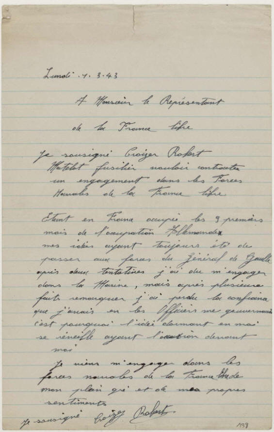 Le 24 juin 1943, Robert demande à suivre le stage commando.