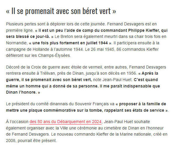 1944, prend part au débarquement sur la plage de Colleville-sur-Orne