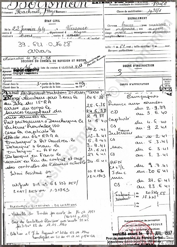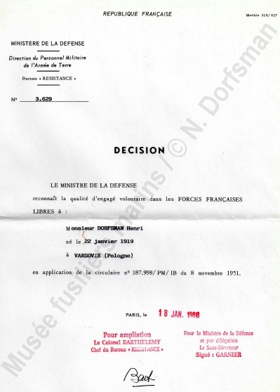 Forces Françaises Libres. Dorfsman, ancien mineur, est l'un des 25