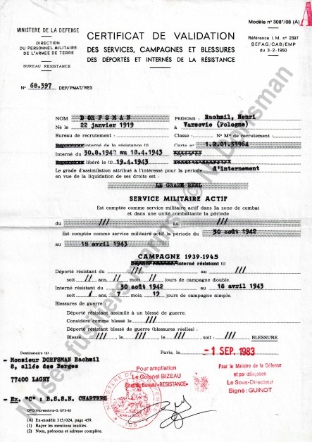 Né le 22 janvier 1919 à VARSOVIE (Pologne) - Décédé le 10 février 1996 à