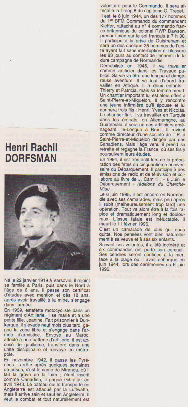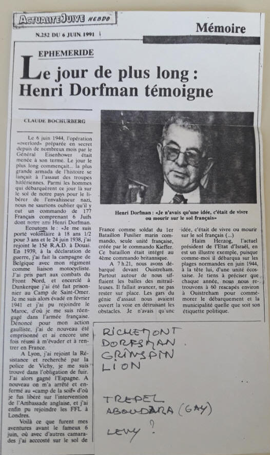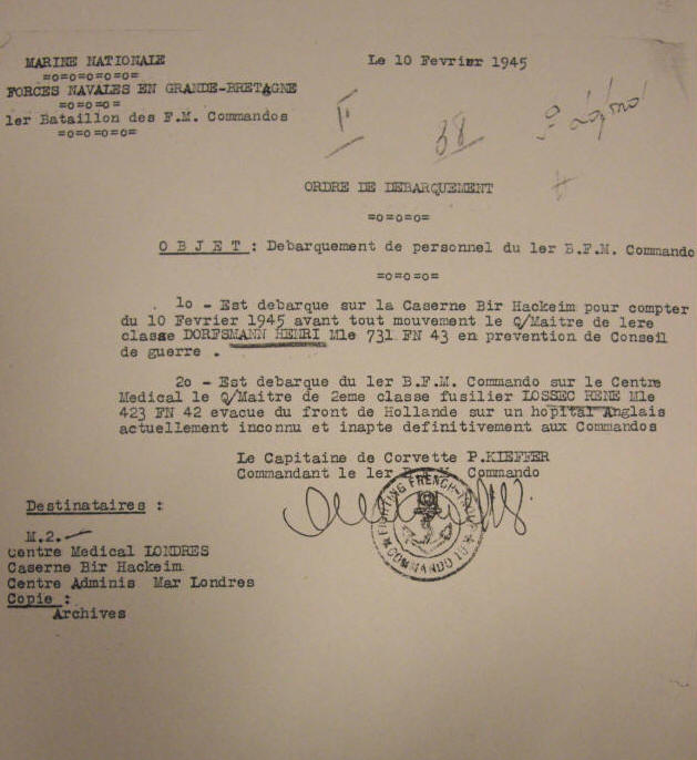 Henri Dorfsman du Commando de fusiliers marins Kieffer le drapeau des
