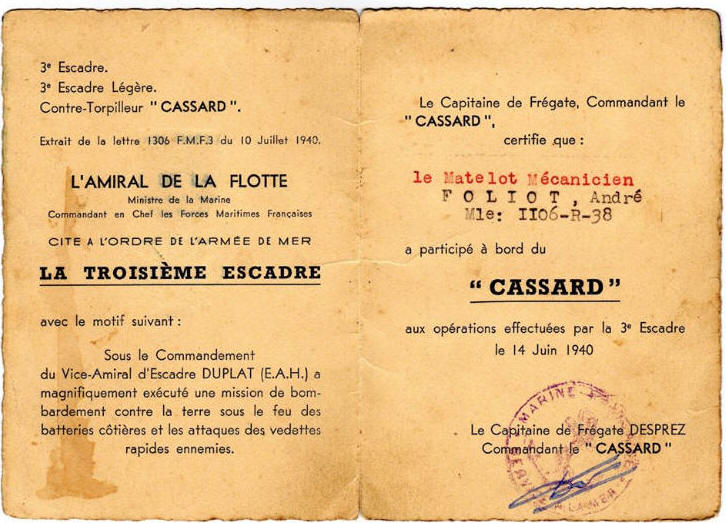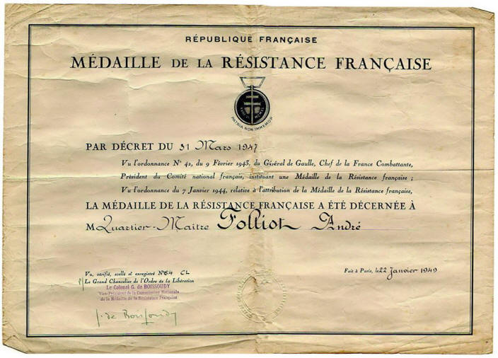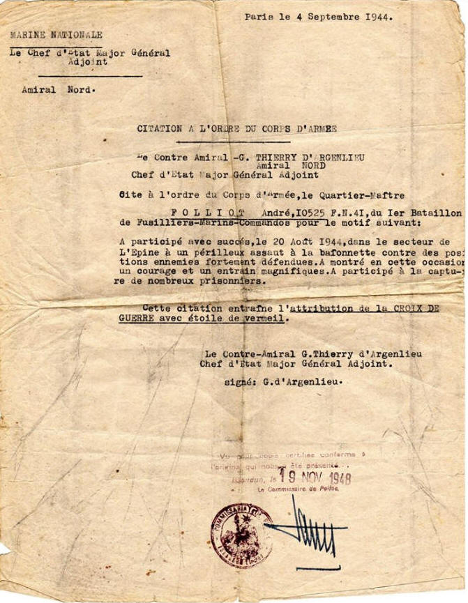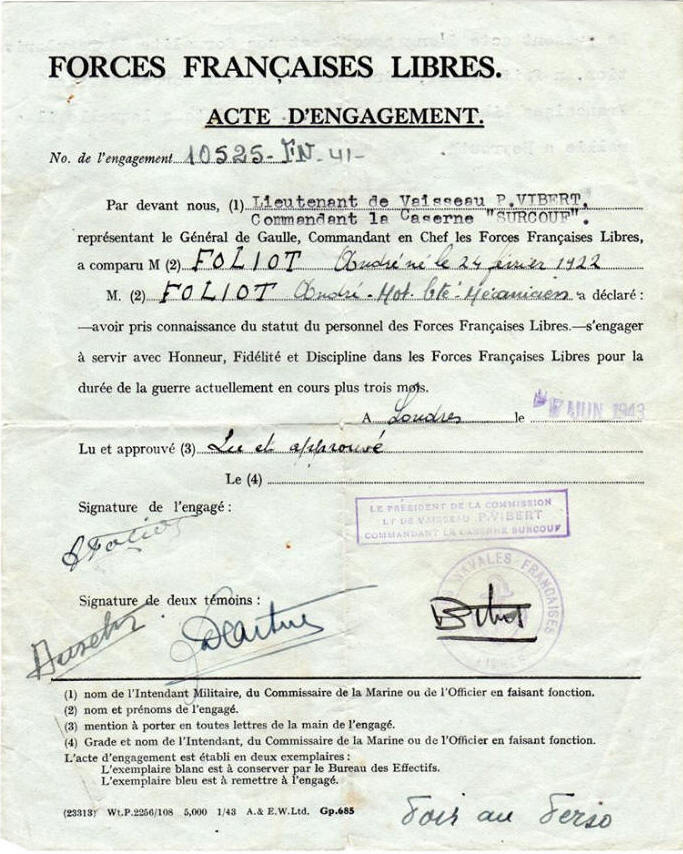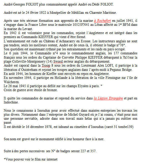ordres du capitaine de corvette Philippe Kieffer. André Foliot fait