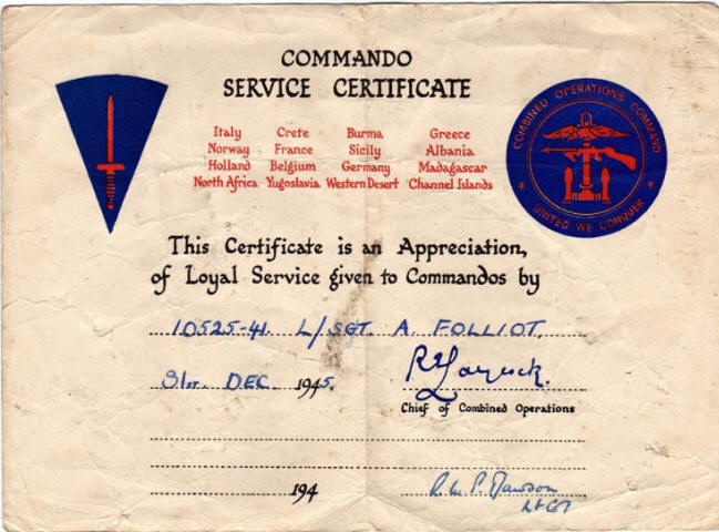 volontaire, en 1942, pour rejoindre les commandos en Angleterre. « Il a