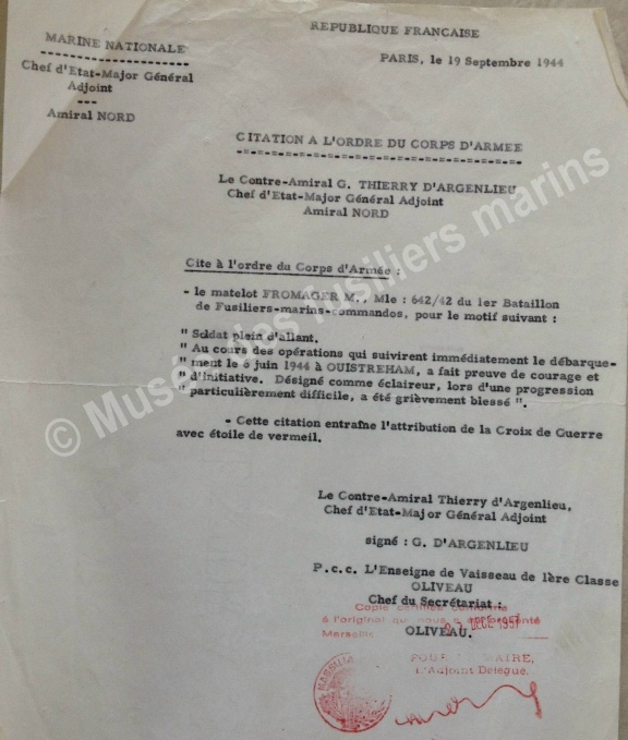 Le 6 Juin 1944, prend part au débarquement sur la plage de