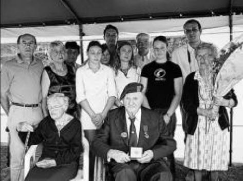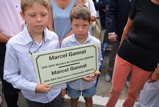 Avec ses petits enfants / Plaque en hommage au glorieux passé