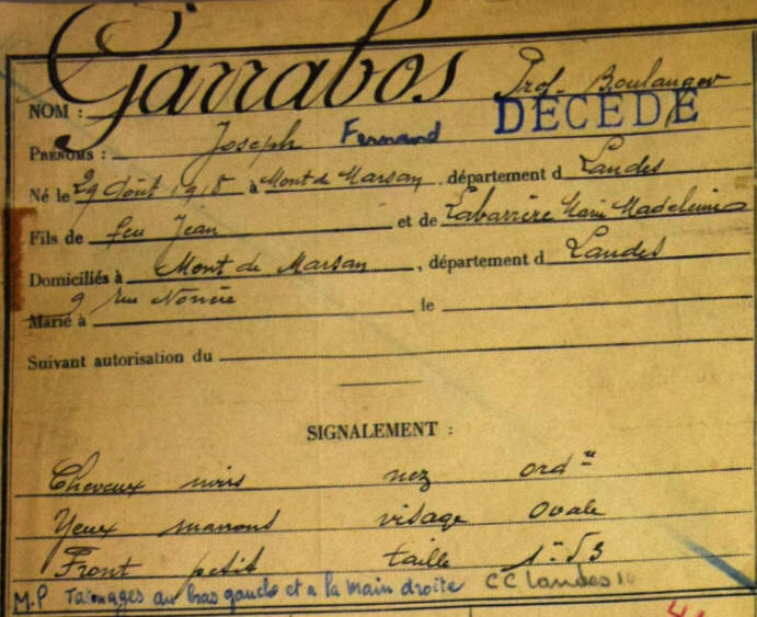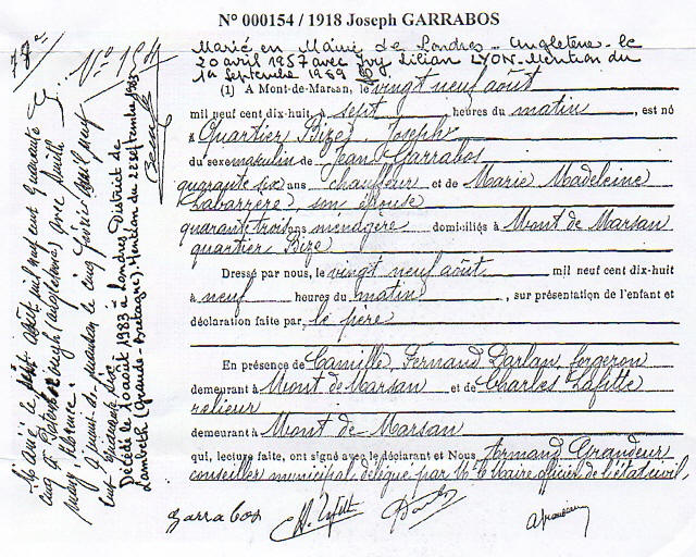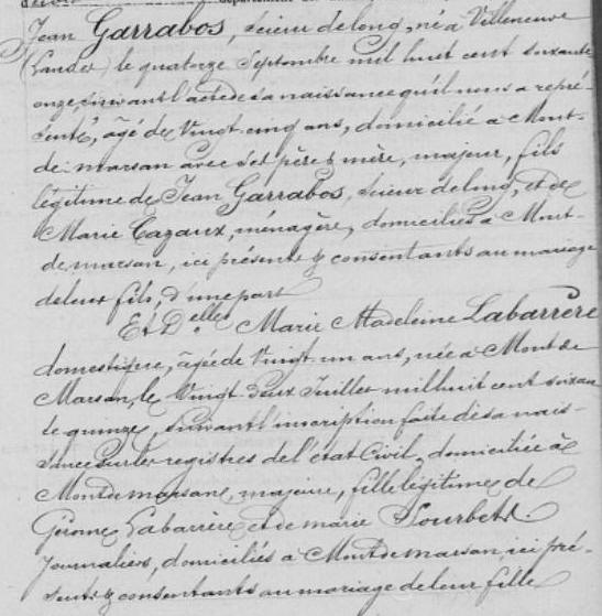 Fils de Jean GARRABOS et de Marie Madeleine LABARRÈRE