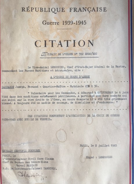 1944, prend part au débarquement sur la plage de Colleville-sur-Orne