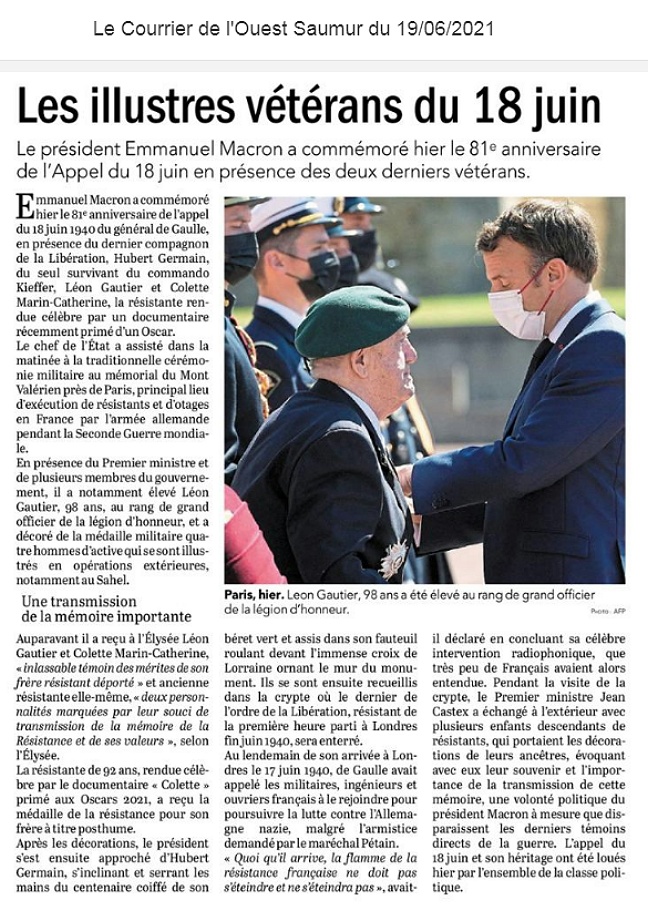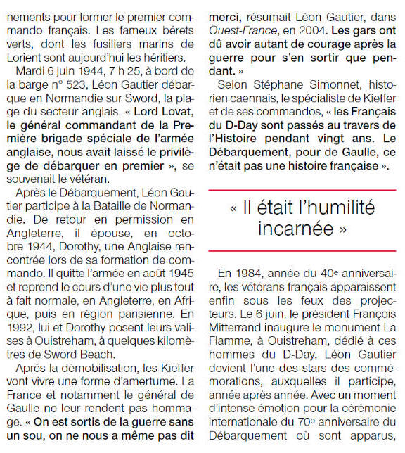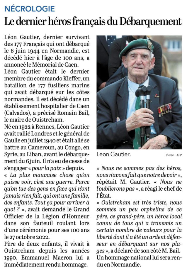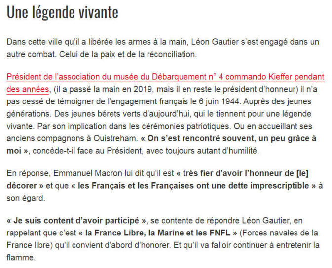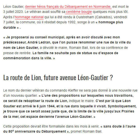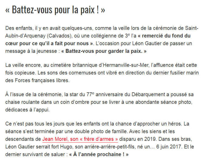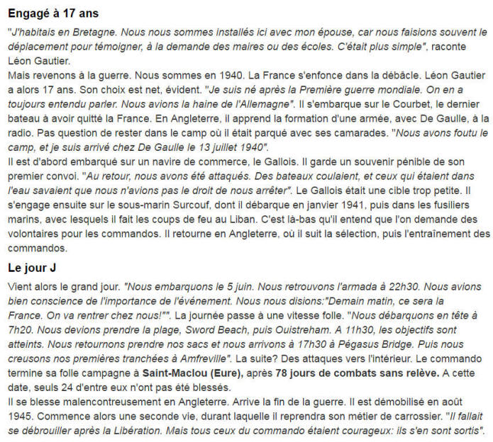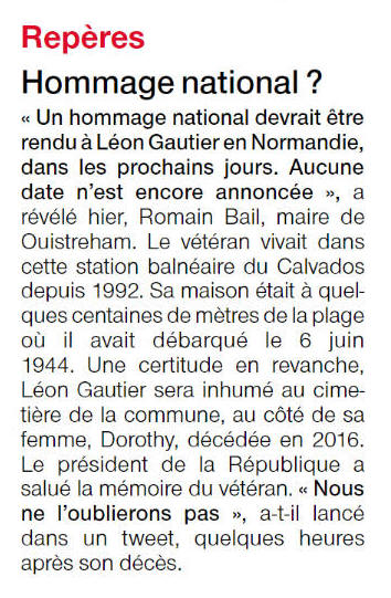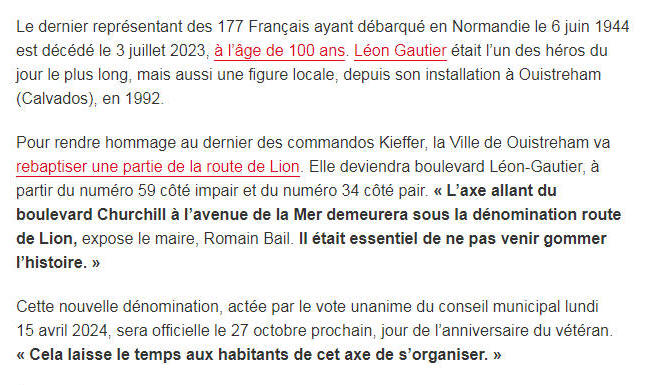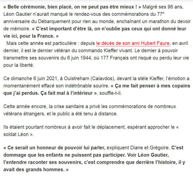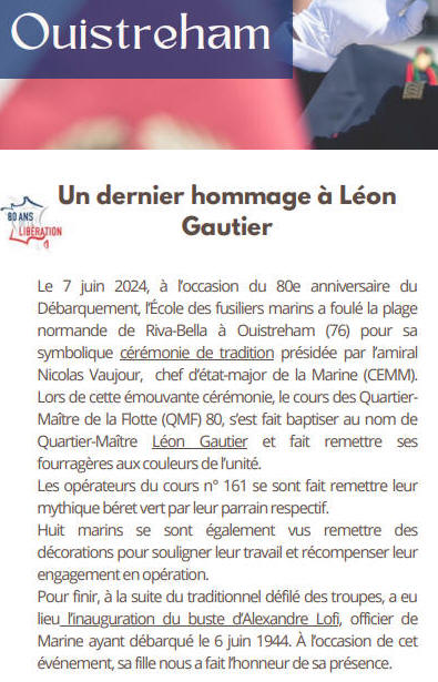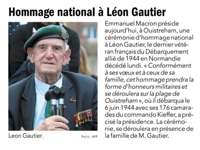 présence de vétérans du Débarquement de Normandie dont Léon Gautier