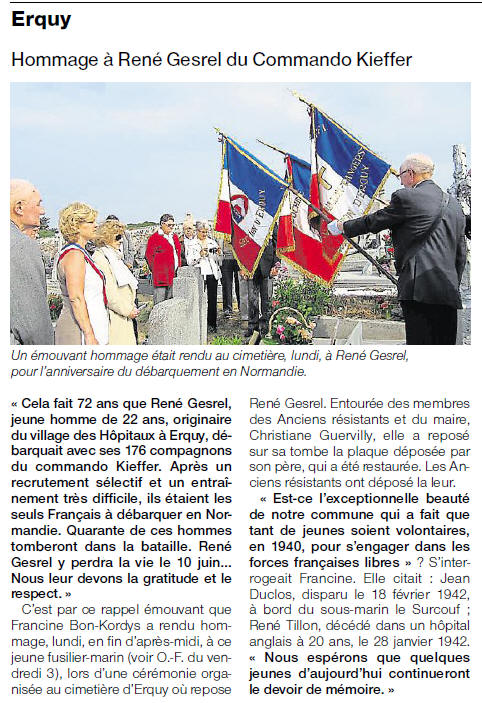 Né le 12 septembre 1922 à ERQUY (Côtes d'Armor)