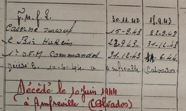 Décédé le 10 juin 1944 à AMFREVILLE (Calvados)