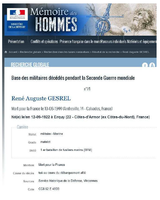 à tous ceux ayant permis de retrouver la famille de René Gesrel