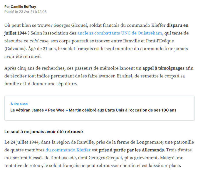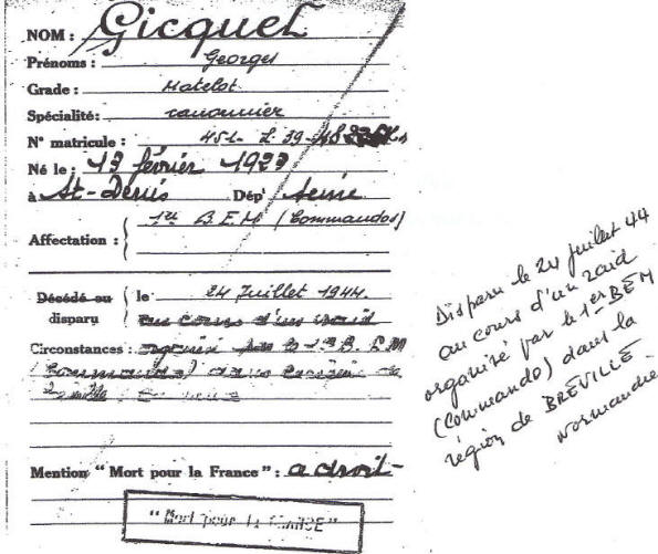Décédé le 24 juillet 1944 à AMFREVILLE (Calvados)