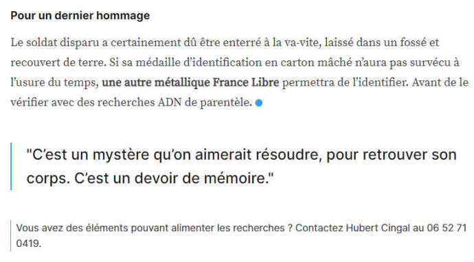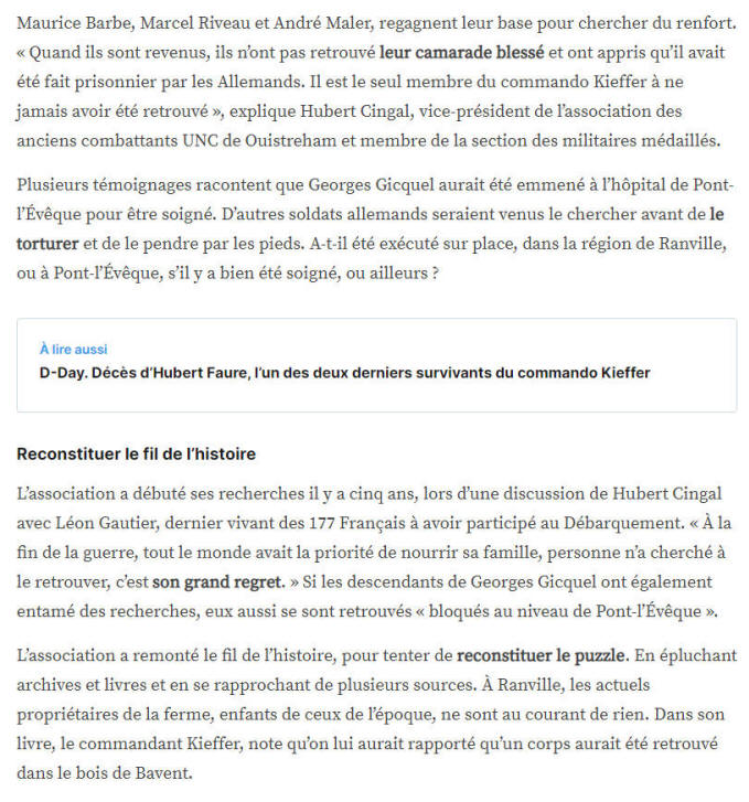 commando ne semble avoir été témoin de la découverte du corps. Son corps
