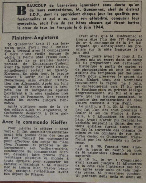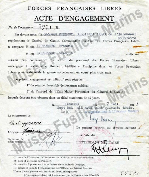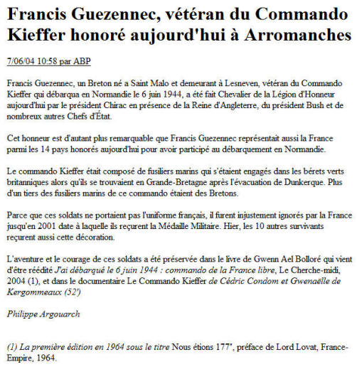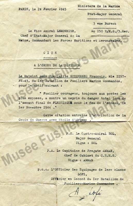 Extrait Livre d'or de l'Ecole des Fusiliers Marins de Lorient