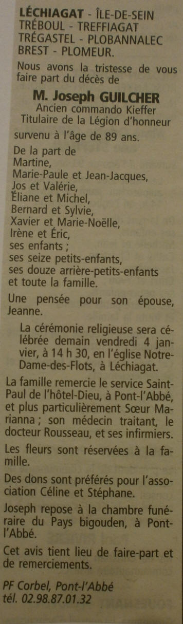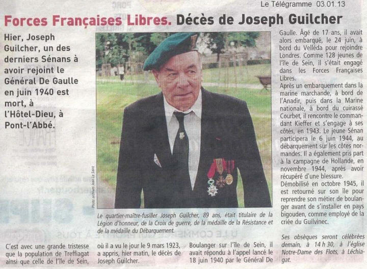 janvier 2013, le décès de Joseph Guilcher porte à 11 le nombre d’anciens