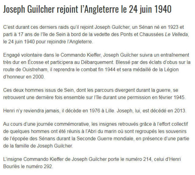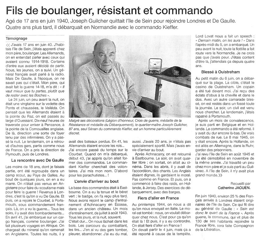 Démobilisé à Brest en octobre 1945, Joseph Guilcher était retourné vivre