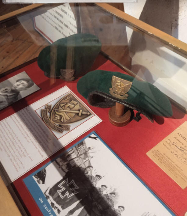 au premier plan le béret vert de Joseph Guilcher et au second celui