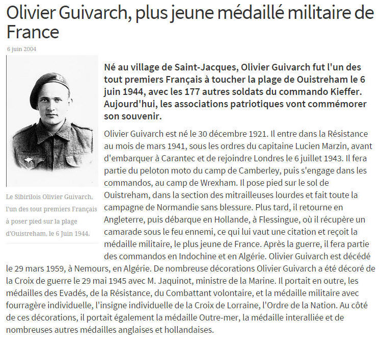 indique "Né le 22 novembre 1921 à Sibiril (29) et engagé FNFL le 08 juin