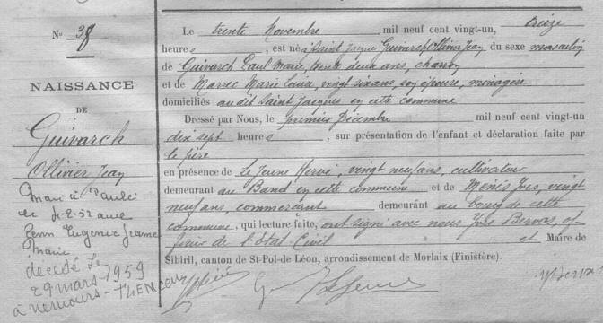 Né le 30 novembre 1921 à SIBIRIL (Finistère) - Décédé le 29 mars 1959 à