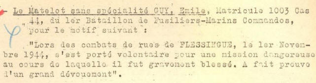 Il s’engagea ensuite en dans les fusiliers-marins et après avoir reçu la