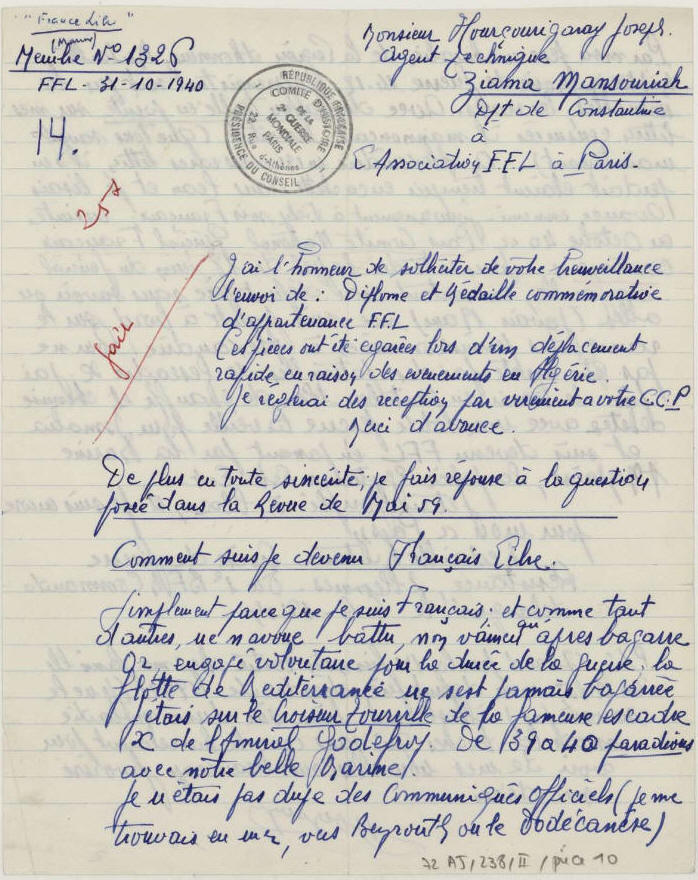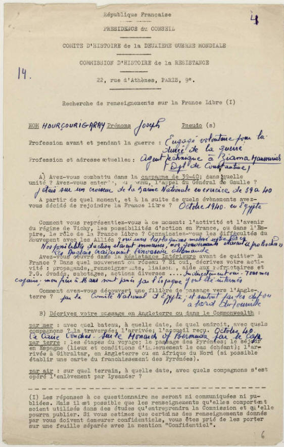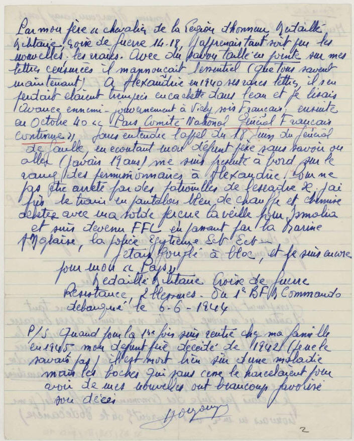 Engagé dans la France Libre en Octobre 1940.