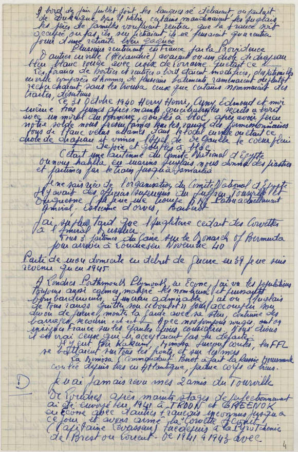 Après l'Armistice de juin 1940, embarque sur le "Tourville" à Alexandrie