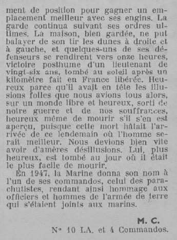 Son nom est porté aujourd'hui par le Commando Marine des nageurs de