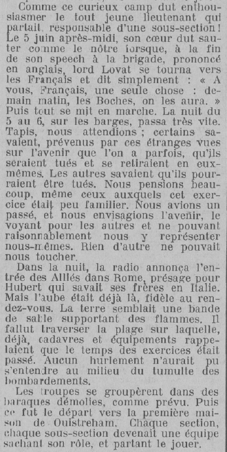 Ouistreham le 6 juin 1944, à la tête de sa sous-section."