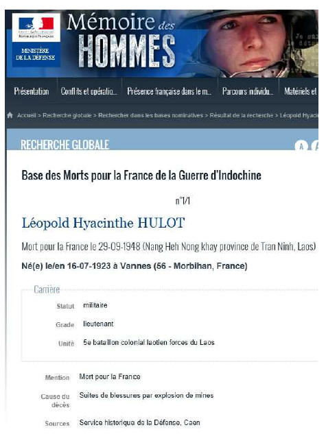 porte volontaire pour la guerre d'Indochine, où il décède le 27