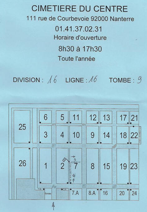 Inhumé au cimetière de NANTERRE (Hauts de Seine) / 7e division / 16e