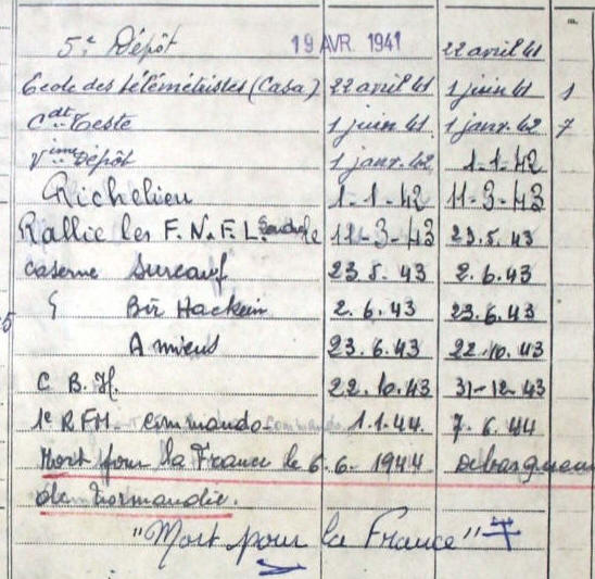 Décédé le 6 juin 1944 à OUISTREHAM (Calvados)