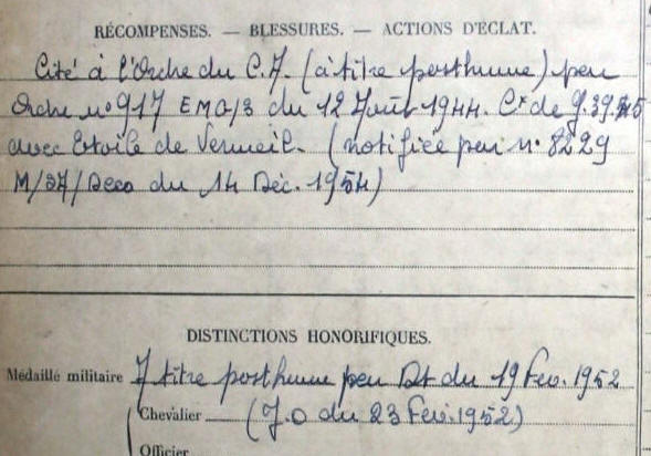 Extrait fiche matricule