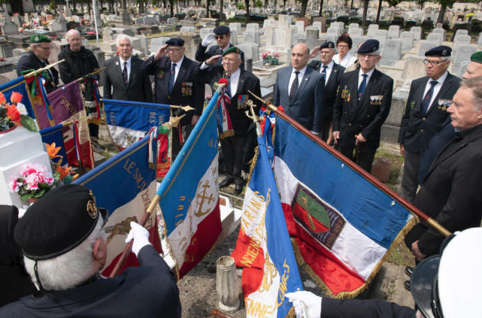 de l'UNC de la Garenne Colombes et son porte drapeau. Travaux de