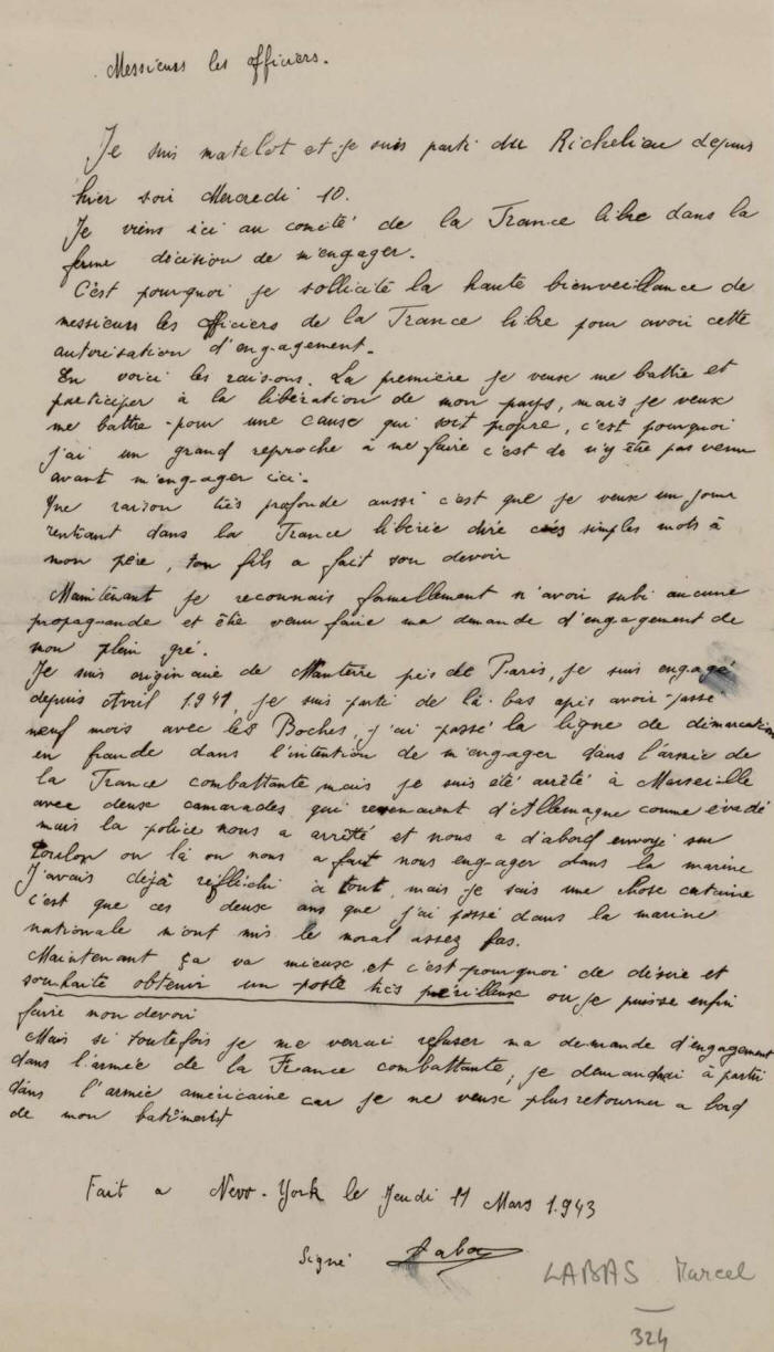 Décide de quitter ce bâtiment le 10 mars 1943 pour rallier les FNFL
