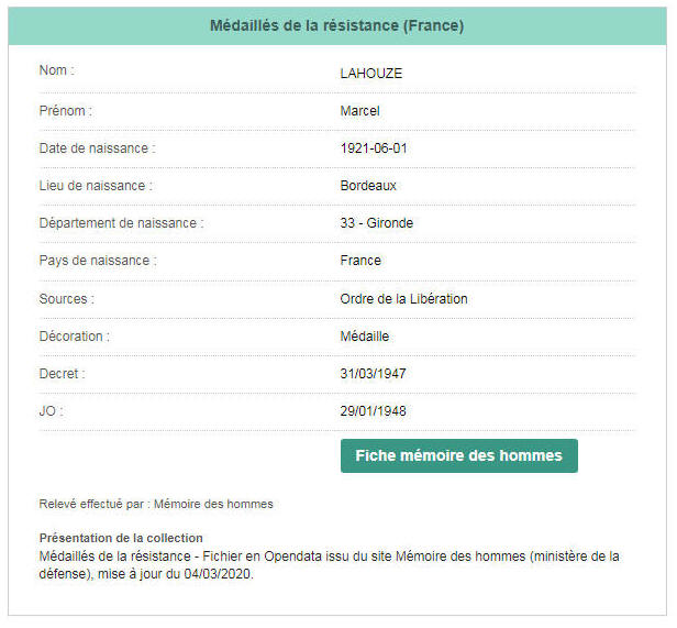Fils de Paul LAHOUZE, né le 17 avril 1892 à Peyrehorade (Landes) -