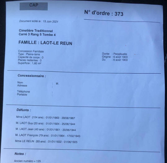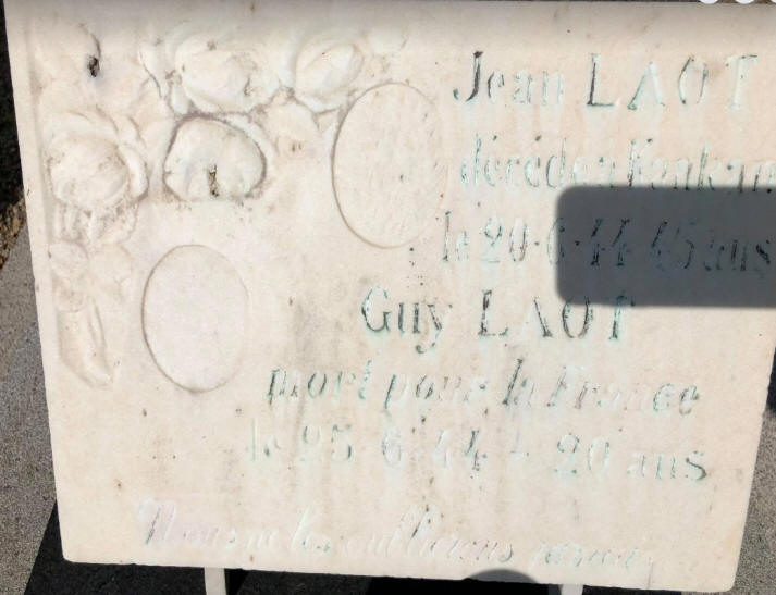 1944. Mort des suites de ses blessures le 25/06/1944, cette concession