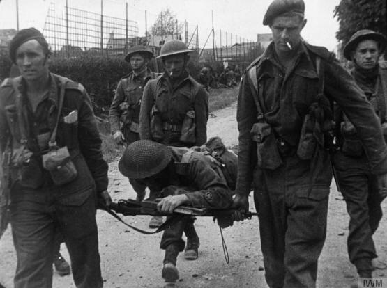 Evacuation d'un blessé par des britanniques