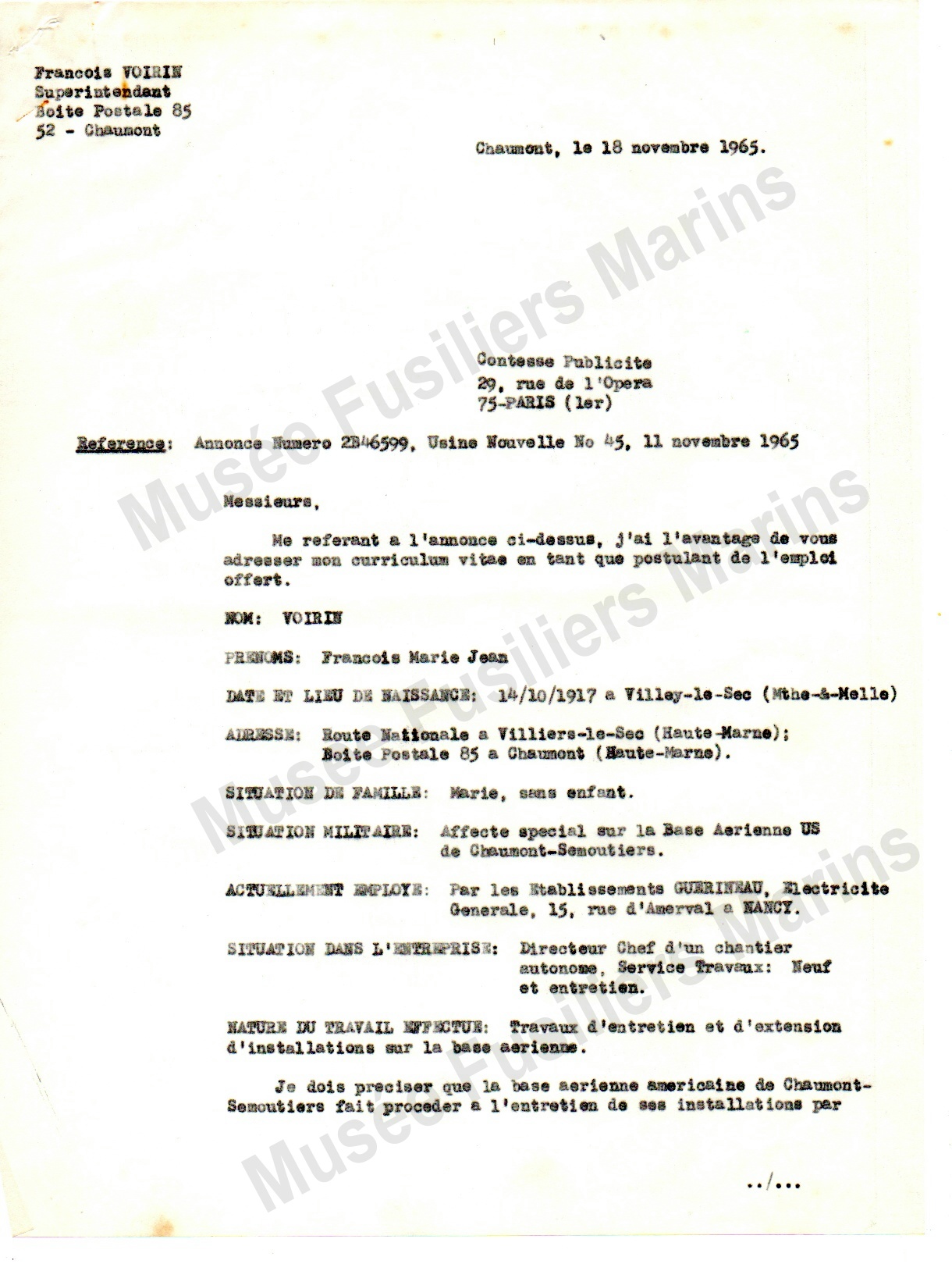 · 1937 (2 février) : engagé volontaire au 18e régiment du génie.