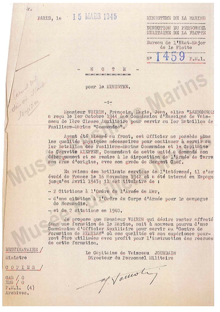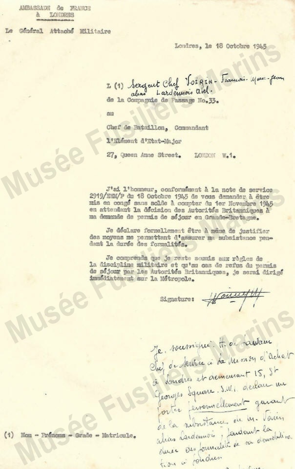 EM1/PERS/FNGB du 8 août 1945), avec le grade de sergent-chef.