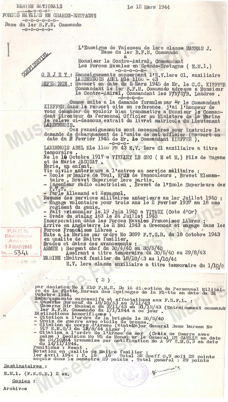 octobre) : incorporé dans les FNFL sous le nom d’Abel Lardennois