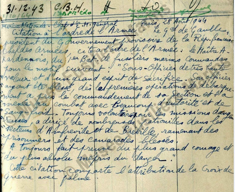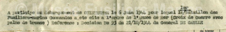 Le 6 Juin 1944, prend part au débarquement sur la plage de