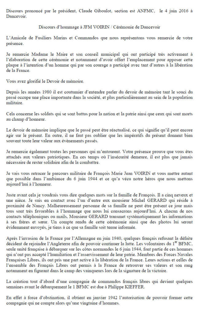 24 novembre 2016 / Cérémonies en hommage à François Voirin