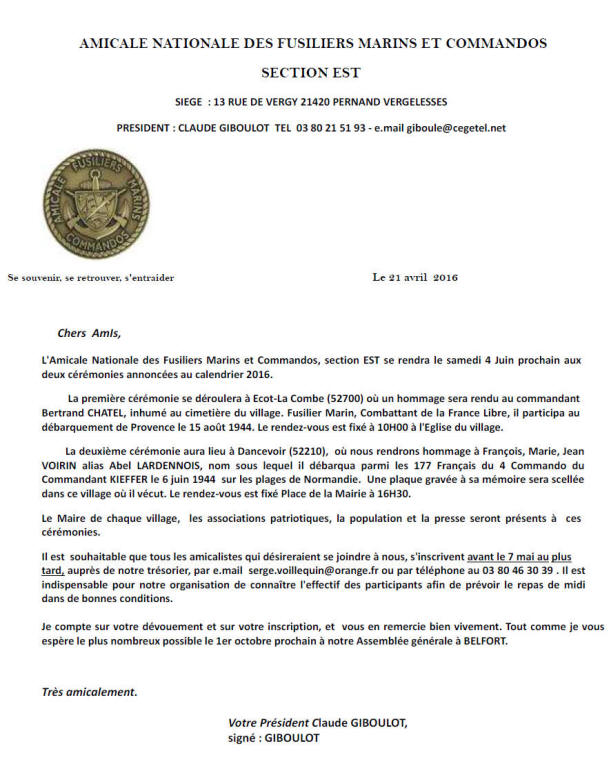 20 juin 2015, remise des documents au musée des fusiliers marins lors
